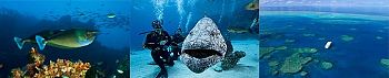 Some of the spectacular dive sites of the Ribbon Reefs include Pixie Pinnacle, Challenger Bay, The Clam Gardens, Lighthouse Bommie, Steve's Bommie, Temple of Doom and Dynamite Pass. At the very top of the Ribbon Reefs lies the famous Cod Hole, home to a family of resident Potato Cod (Grouper). Like large docile puppy dogs, these magnificent fish are easily approachable and appear ever eager to pose for the camera.