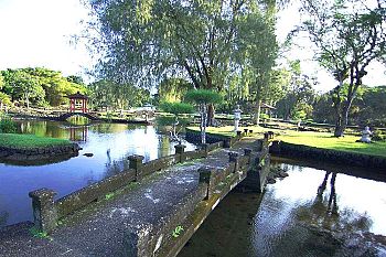 "Blink and you may think you're in Japan as you stroll through peaceful Liliuokalani Gardens, named after Hawaii's last reigning monarch, Queen Liliuokalani. Located on Hilo's Banyan Drive, this authentic, 30-acre Japanese garden was dedicated in 1917 as a tribute to Hawaii's first Japanese immigrants who worked in the Big Island's sugar cane fields.