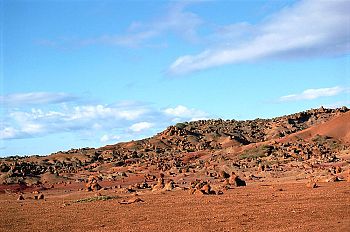 According to Hawaiian lore, this windswept landscape is the result of a contest between two kahuna (priests) from Lanai and Molokai. Each was challenged to keep a fire burning on their respective island longer than the other, and the winner's island would be rewarded with great abundance. The Lanai kahuna, Kawelo, used every piece of vegetation in Keahiakawelo to keep his fire burning, which is why this area is so barren today.