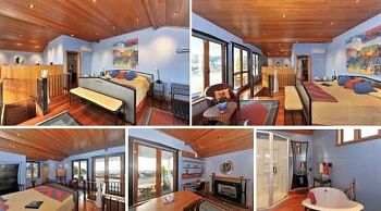 * A designer décor, incorporating the extensive use of New Zealand native timbers and architectural steel and bronze work by a notable local artist. * A large and comfortable Super King bed - itself a piece of art. * Distinctive ensuite bathroom, with separate bath and shower * Hairdryer, iron and ironing board * Your own private lounge and office area with gas open fire * Central heating and air-conditioning * Large covered balcony with commanding views over Nelson City, Tasman Bay and the Maitai Valley. You will be able to enjoy the Nelson sun in complete privacy and comfort - relax on the comfortable seating or sun-lounger * Tea and coffee making facilities * Refrigerator * Television, DVD, direct dial telephone, fax and wireless Internet access * Generous 'his & hers' closet space and out of the way storage for suite-cases * Ipod docking station/sound system
