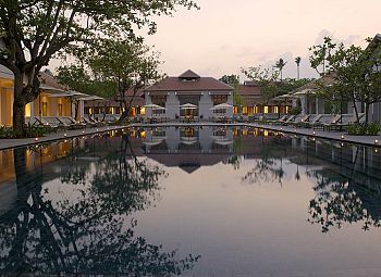 Set on a large garden estate, Amantaka is housed in graceful French colonial buildings surrounded by shady verandas. High-ceilinged suites encircle a large grassed courtyard, each with a private outdoor area fringed by mango trees