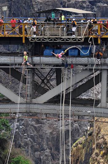 The original, the one and only, the must do, the ultimate thrill! 4 seconds of freefall, 111m of Pure Adrenalin! Off the famous Victoria Falls Bridge, with a spectacular backdrop of the majestic Victoria Falls, move to the edge, arms out and 5-4-3-2-1- BUNGEE leaving yourself plummeting towards the rumbling waters of the rapids of the Zambezi River and let the adrenaline flow.