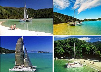 Imagine... ghosting along effortlessly through pristine clear waters while relaxing aboard a spacious sailing catamaran, surrounded by secluded coves, golden beaches, islands and lush native forest. Treat yourself to the only scheduled Full Day sailing tour in New Zealand's coastal paradise... the Abel Tasman National Park. Either chill out and relax, get involved in the sailing or learn as you go... you decide! Experience some great sailing, stop at some stunning beaches, with a full hour to enjoy your lunch and relax on Anchorage Beach. A great opportunity to go swimming or take a short walk and explore the caves. Visit the Fur Seal Colony, Split Apple Rock, and much more on your return to Kaiteriteri...see all the highlights on this tour!