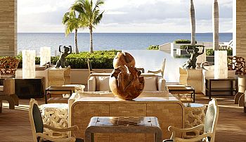 Throughout the Anguillan resort, modern architectural forms interplay with the natural environment, while sophisticated, contemporary interiors by designer Kelly Wearstler add rich textural contrast.
