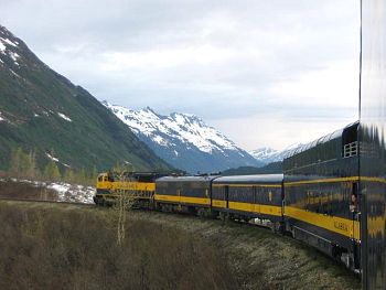 The Chugach National Forest borders Turnagain Arm, some six million acres, the second largest in the U.S. Bald eagles cruise the thermals above and Dall sheep come to feed on the low plants growing on the cliffs bordering the track. Next comes Potter Marsh in the Anchorage Coastal Wildlife Refuge. Anchorage is the final stop, 114 miles out of Seward.
