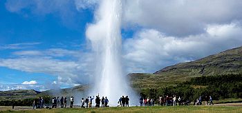 The Golden Circle tour allows you to visit some of Iceland's most stunning sights, starting with the Geysir geothermal area where the Strokkur geyser shoots a column of water up to 30 metres (98 ft.) into the air every 4-8 minutes in a thrilling display of nature's forces. The visit continues with Gullfoss (Golden Falls) waterfall, created by the river Hvítá, which tumbles and plunges into a crevice some 32 m (105 ft.) deep.