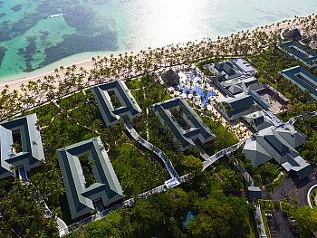 - Towel, sun lounger and palm leaf parasol service on the beach and swimming pool area