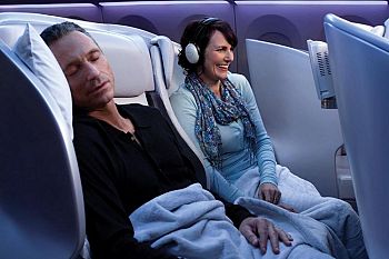 Enjoy unsurpassed personal space with the revolutionary Premium Economy Spaceseat™, a flexible space that seamlessly transitions between private time and socialization – perfect for business travelers and vacationers alike. With a spacious seat area, there's no need to worry about other passengers sitting too close for comfort. And just like a favorite armchair at home, the seat tilts back and slides forward.