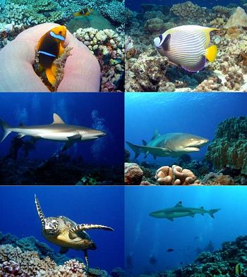 - Papetoai Lagoon - Anemones with their clown fish, puffer fish, trumpet, butterflies, angels, parrots, etc.