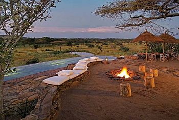 The organic lines of two rim-flow swimming pools echo those of a watering hole that lies just below. The elevated viewing decks over the watering hole allow guests to view game without even leaving their lodge, and a Swahili-inspired 'beach' offers the opportunity for some serious rest and relaxation. The contrast of stone and canvas against cutting-edge design and comfortable furnishings is integrated in eight open-style suites and one Villa Suite.