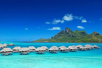 The most famous of French Polynesia's Leeward Islands, Bora Bora is the quintessential tropical paradise. Volcanic in origin, it is surrounded by sand-fringed motus (small islets) on an outer coral reef that encloses a turquoise lagoon. With only one navigable pass, the crystal-clear lagoon is calm, warm and relatively shallow. At 727 metres (2,385 feet), Mount Otemanu towers over the main island. Next to it, the more rounded Mount Pahia stands at 658 metres (2,159 feet).