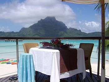 Romantic table for two with a view of Mount Otemanu